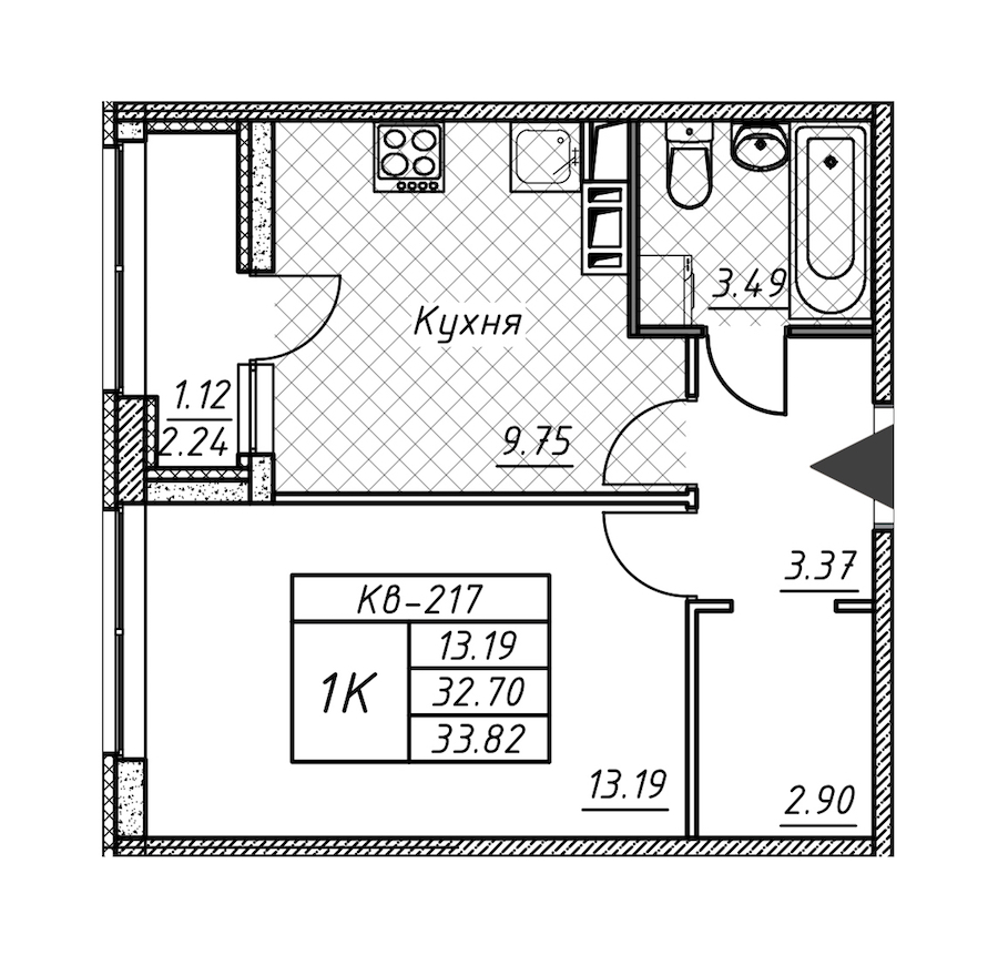 - Площадь33,82 м2
