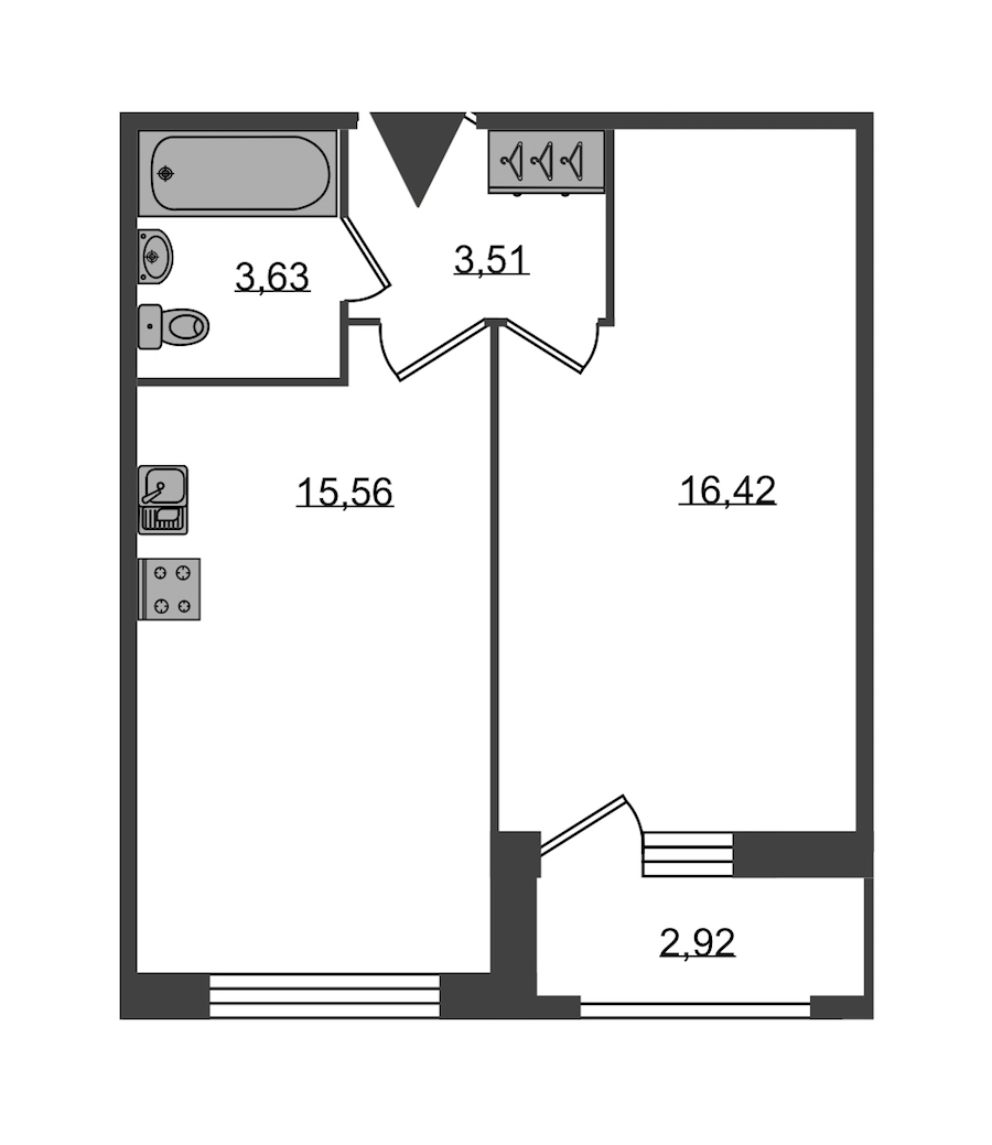 - Площадь кухни15,56 м2