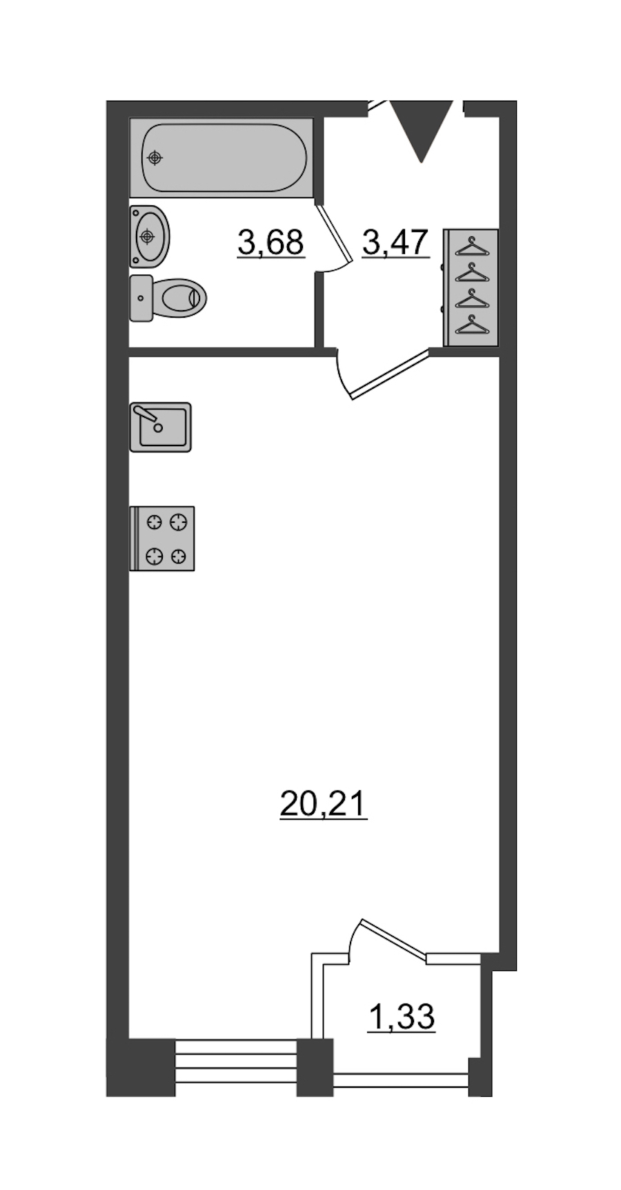 Квартира-студия на 1-ом этаже 27,4 кв.м