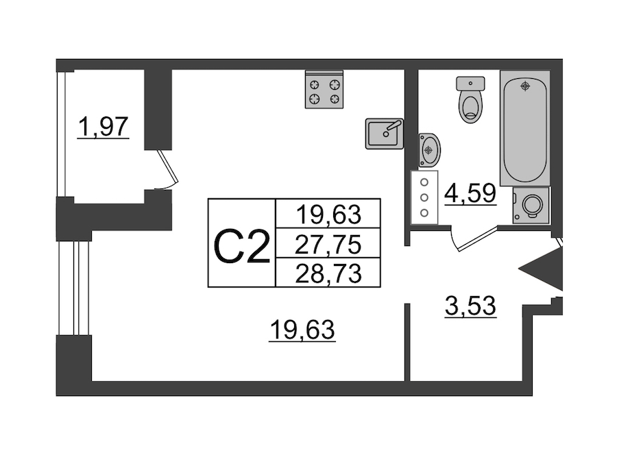 - Площадь29,7 м2