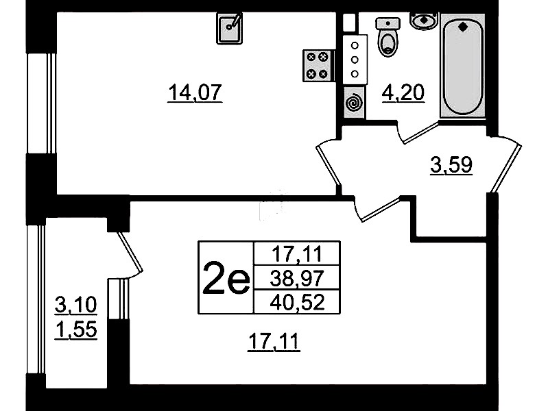 - Площадь40,44 м2