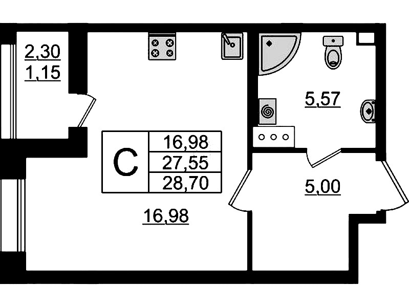 • Площадь28,7 м2