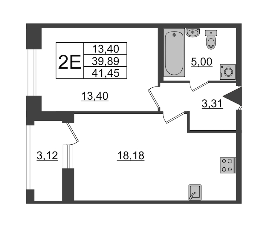 - Площадь41,45 м2