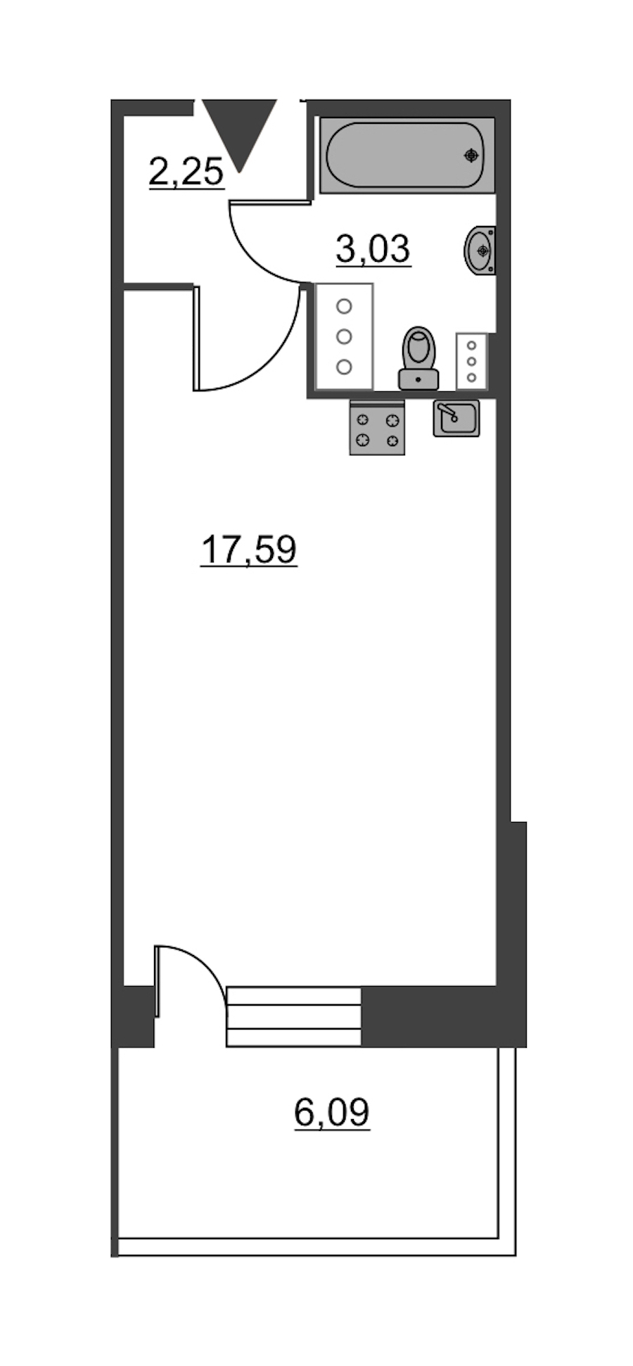 - Площадь24,7 м2