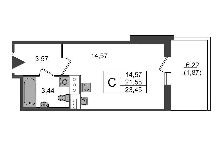 • Количество комнатСтудия