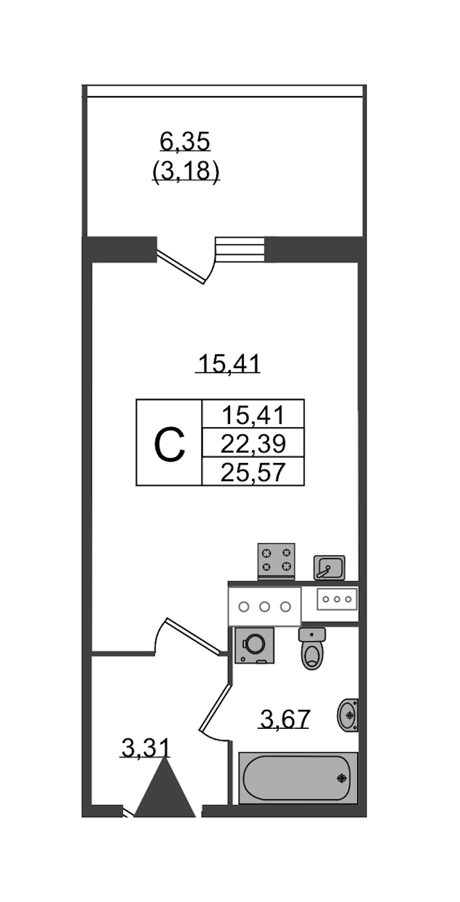 - Площадь25,57 м2