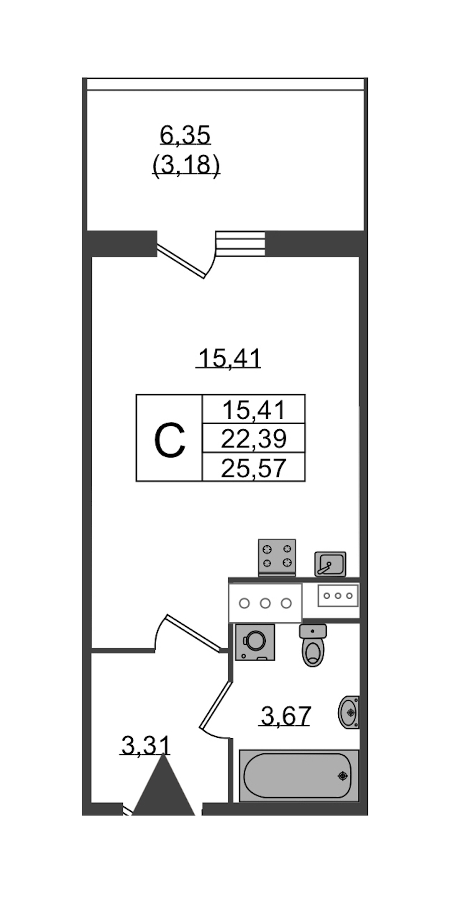 - Площадь25,57 м2