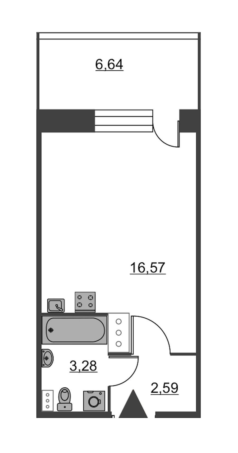 - Площадь24,3 м2