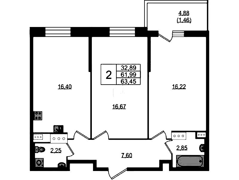 - Площадь63,2 м2