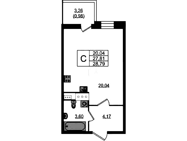 Квартира-студия на 11-ом этаже 28,8 кв.м