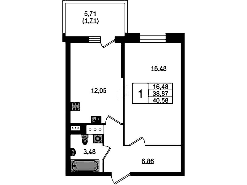Однокомнатная квартира на 9-ом этаже 40,1 кв.м