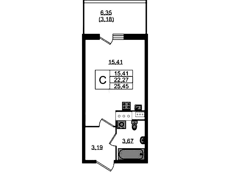 - Площадь24,1 м2