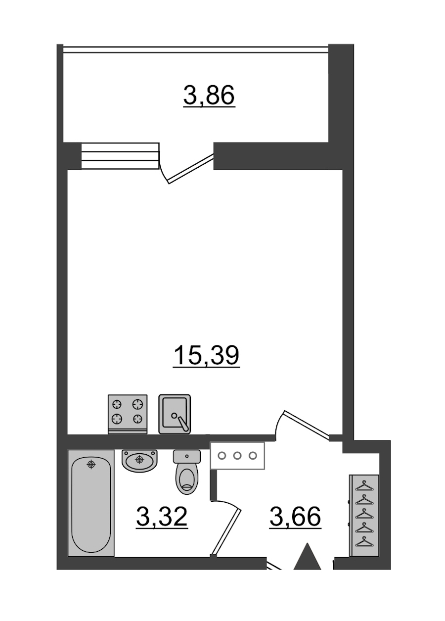 Квартира-студия на 13-ом этаже 25,1 кв.м