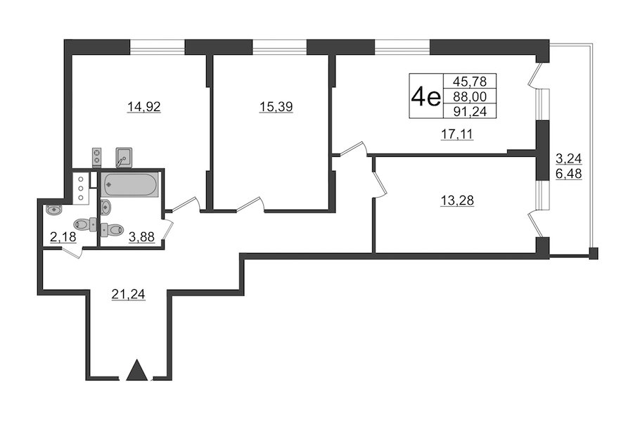 - Площадь91,24 м2