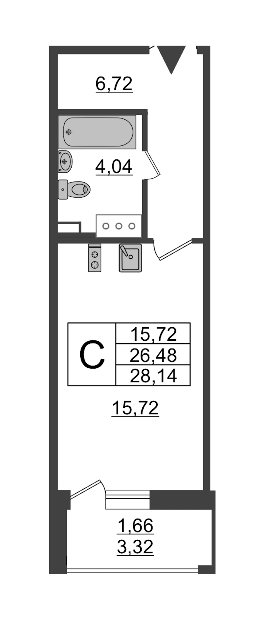 Квартира-студия на 12-ом этаже 28,14 кв.м