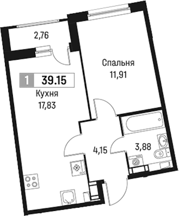 - Площадь39,15 м2