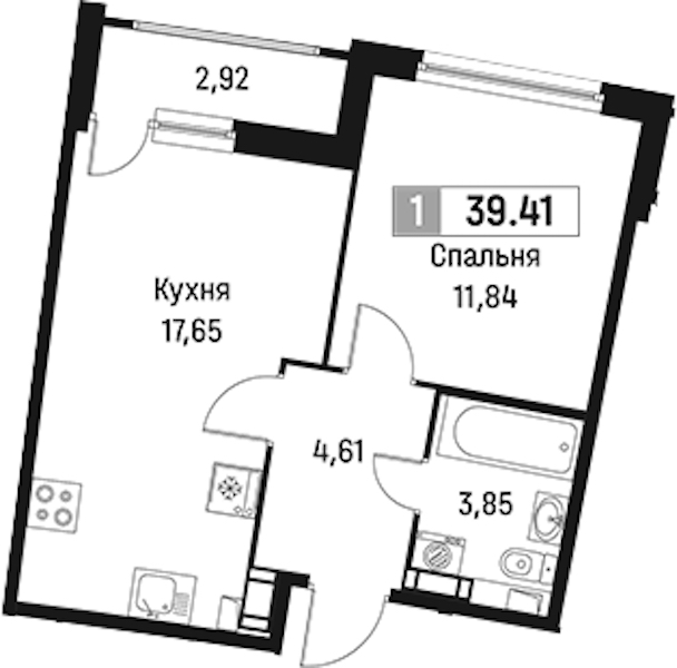 - Площадь39,41 м2
