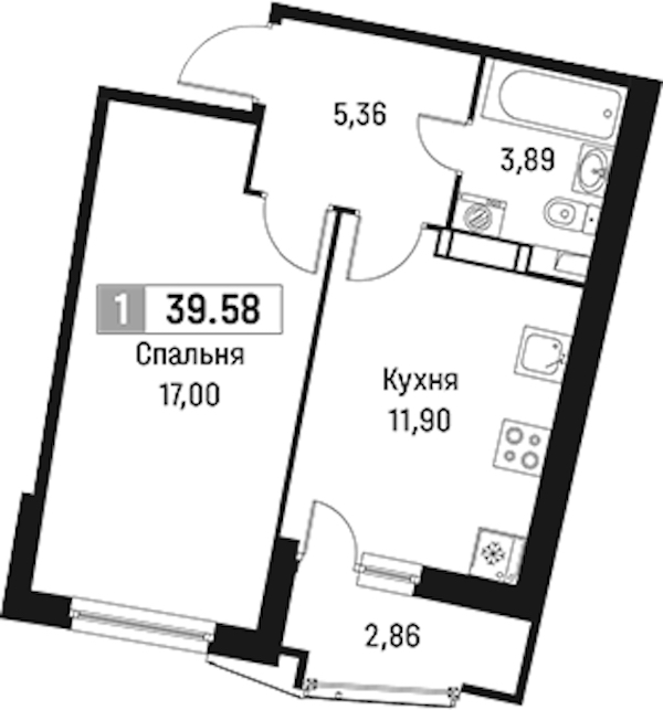 - Площадь39,58 м2