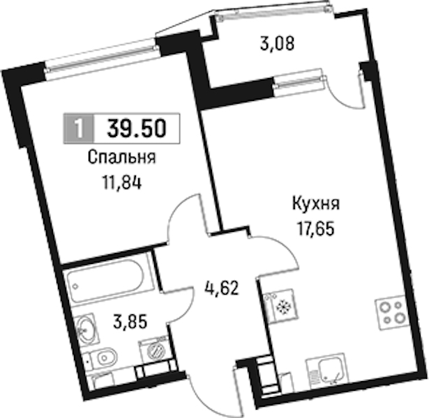 - Площадь39,5 м2