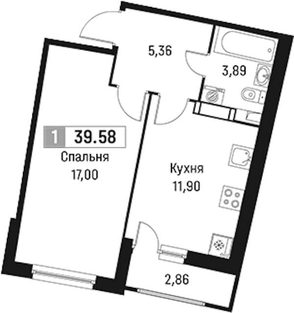 - Площадь39,58 м2
