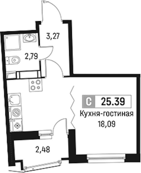 - Площадь25,39 м2