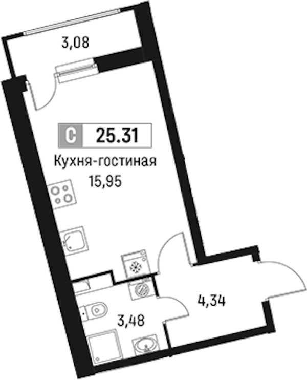 - Площадь25,31 м2