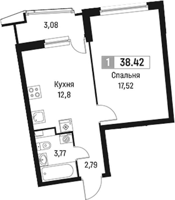 - Площадь38,42 м2