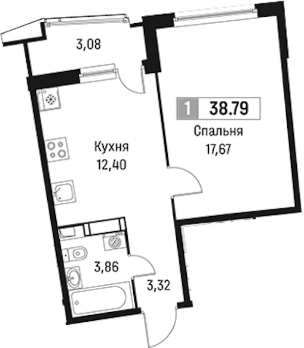 - Площадь38,79 м2