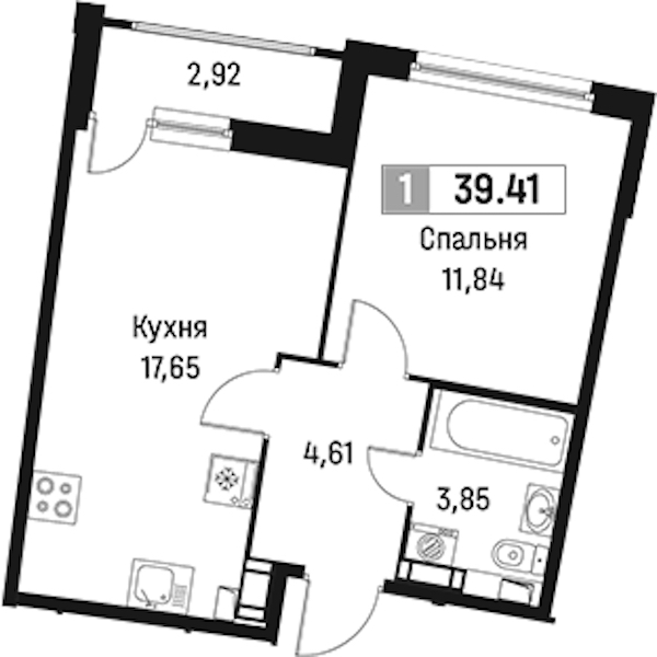 - Площадь39,41 м2