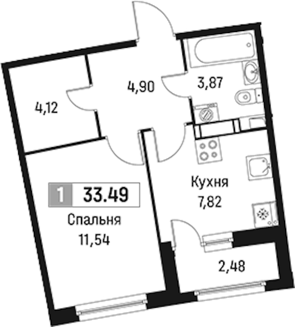 • Площадь33,49 м2
