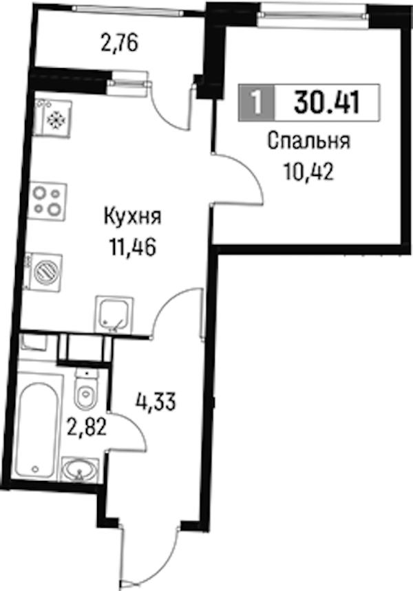 • Площадь30,41 м2