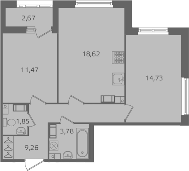 - Площадь кухни18,62 м2