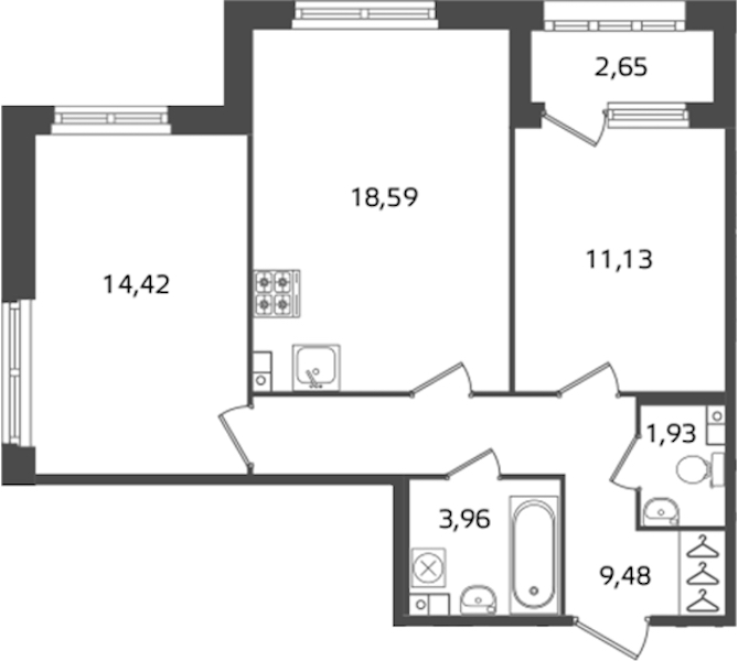 - Площадь59,51 м2