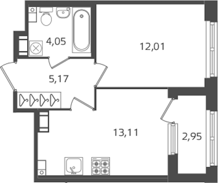 - Площадь кухни13,11 м2