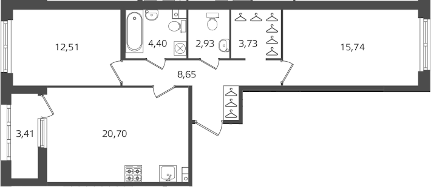 - Площадь68,66 м2