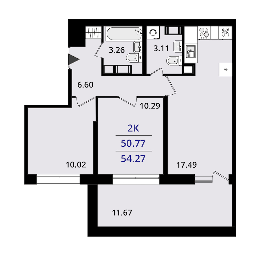 - Площадь54,27 м2