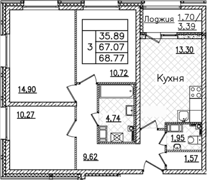 - Площадь68,77 м2