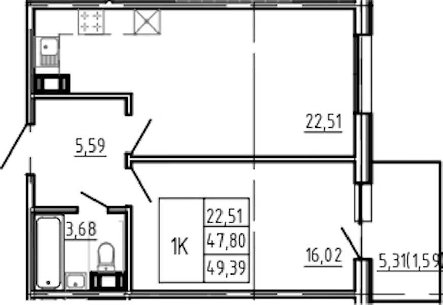 - Площадь49,39 м2