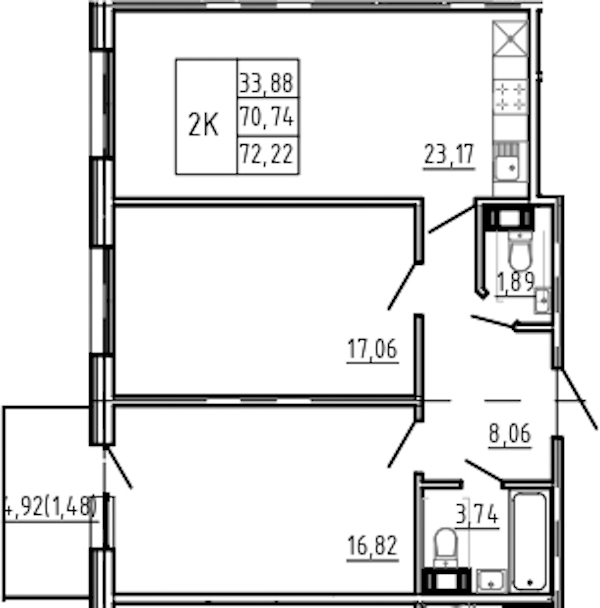 - Площадь72,22 м2