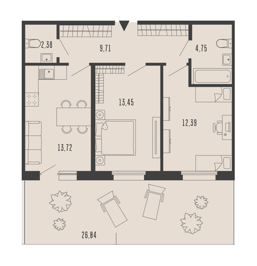 Двухкомнатная квартира на 1-ом этаже 64,21 кв.м