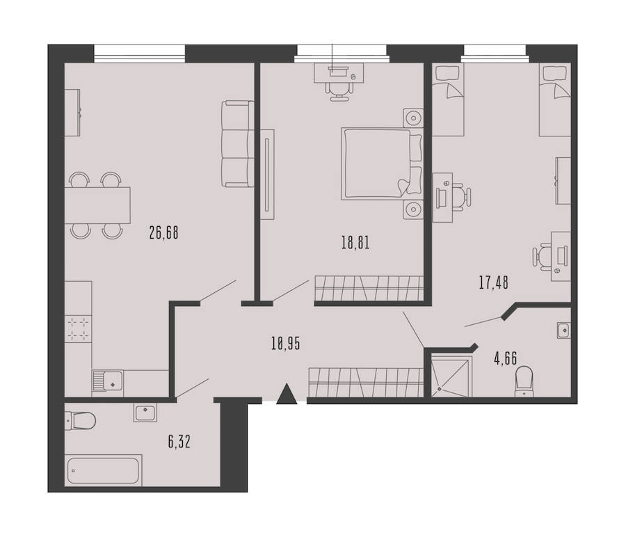 - Площадь кухни26,68 м2