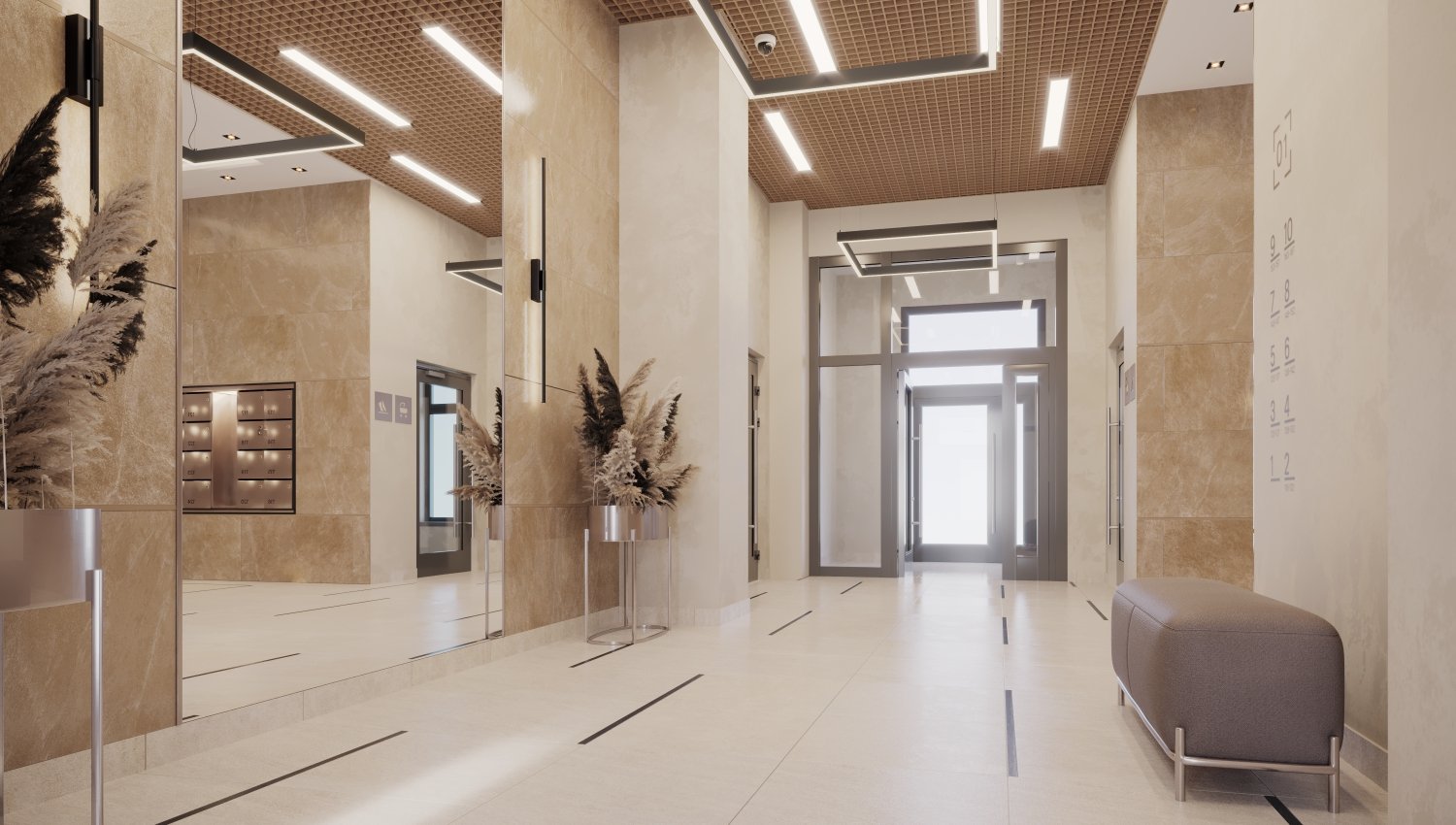 Вместе с «Умным домом» безопасность поддержат и камеры видеонаблюдения на территории, в парадных, холлах первого этажа, лифтах и паркинге. В жилом комплексе будут работать пост охраны и консьержные. В каждой парадной установят колясочные, а в паркинге и на техническом этаже предусмотрят индивидуальные кладовые.
