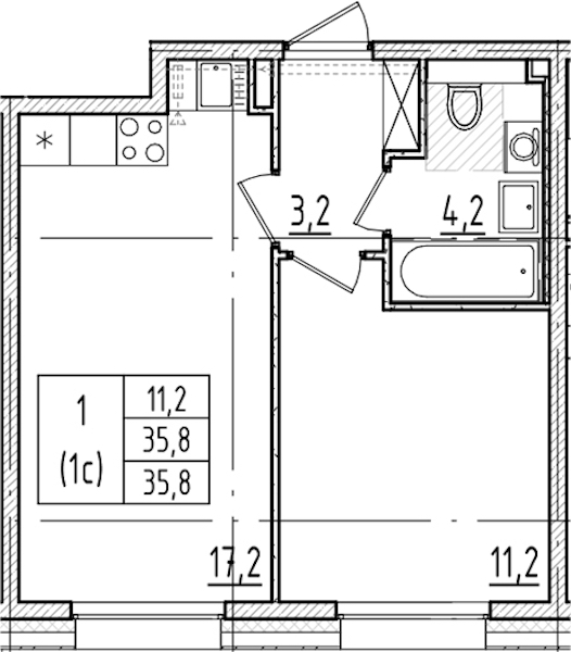- Площадь кухни17,2 м2