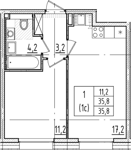 - Площадь кухни17,2 м2