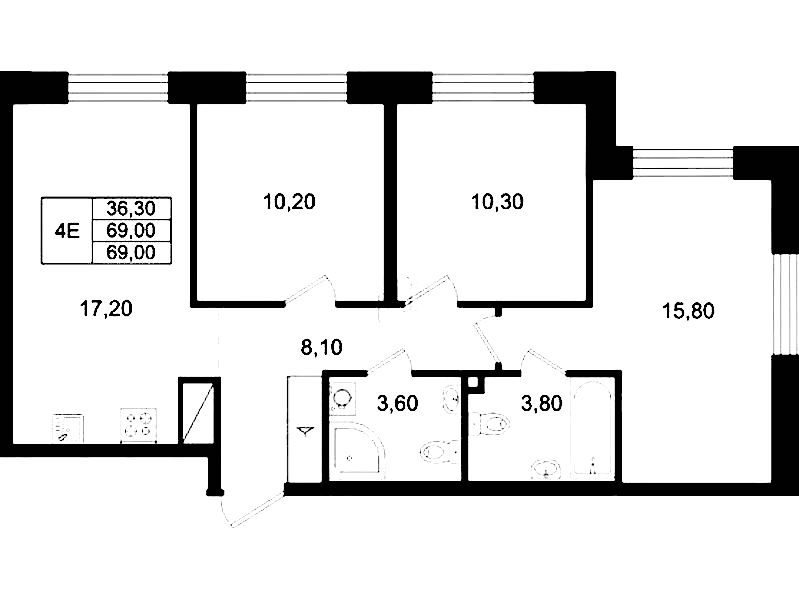 - Площадь69 м2