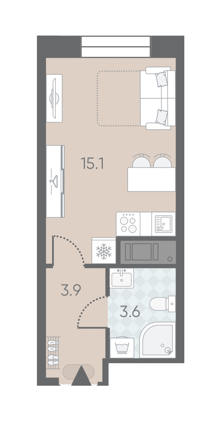 - Площадь22,6 м2