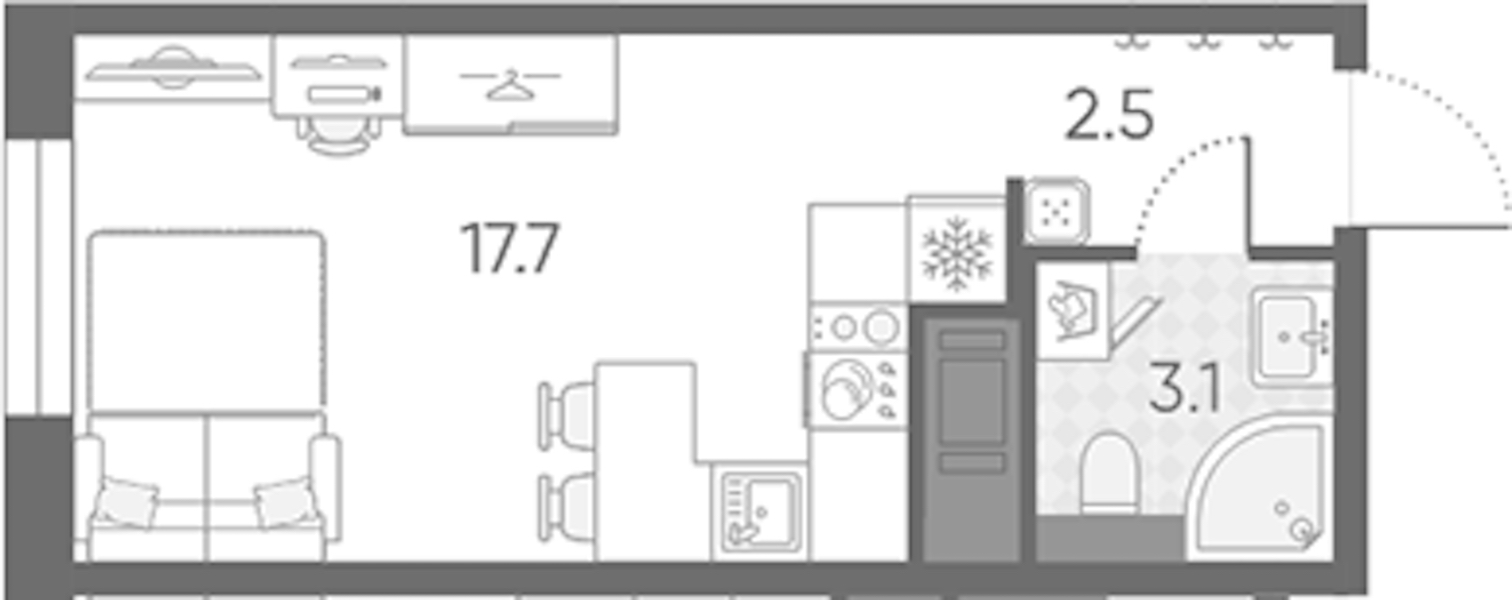 - Площадь23,3 м2