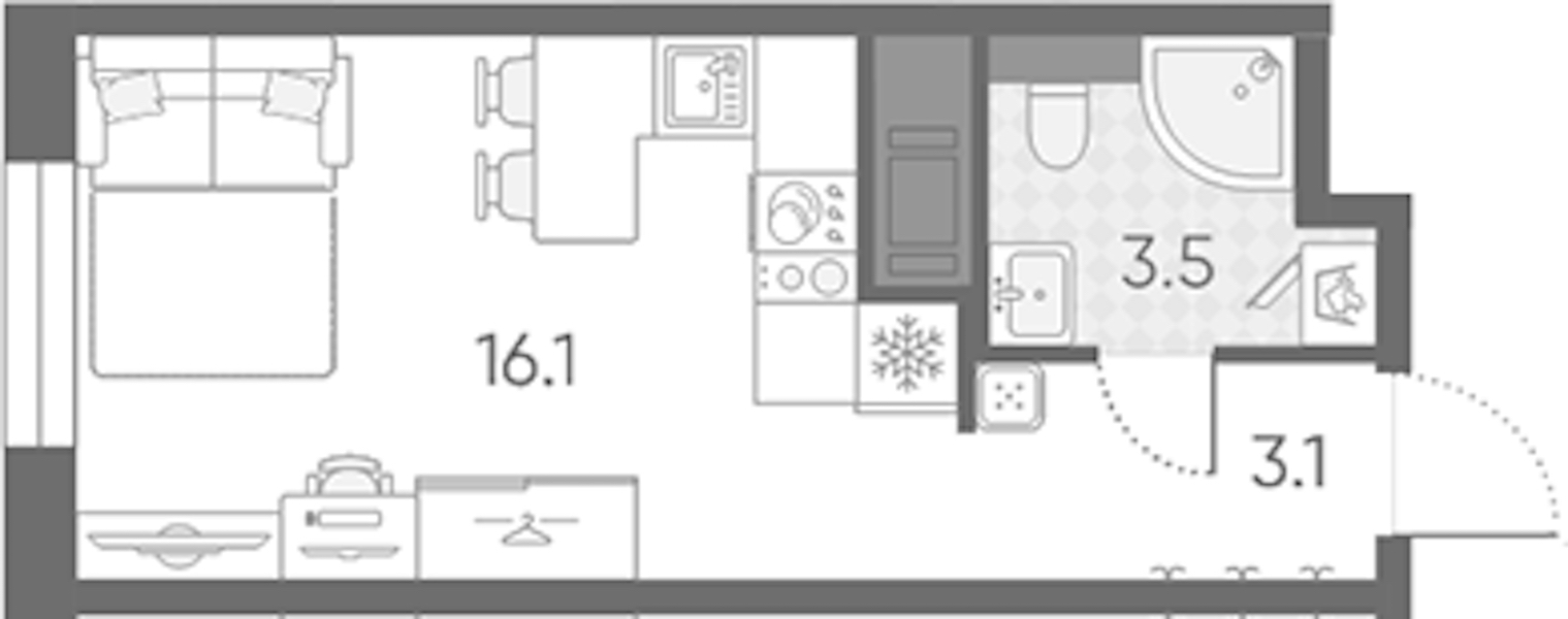 - Площадь22,7 м2