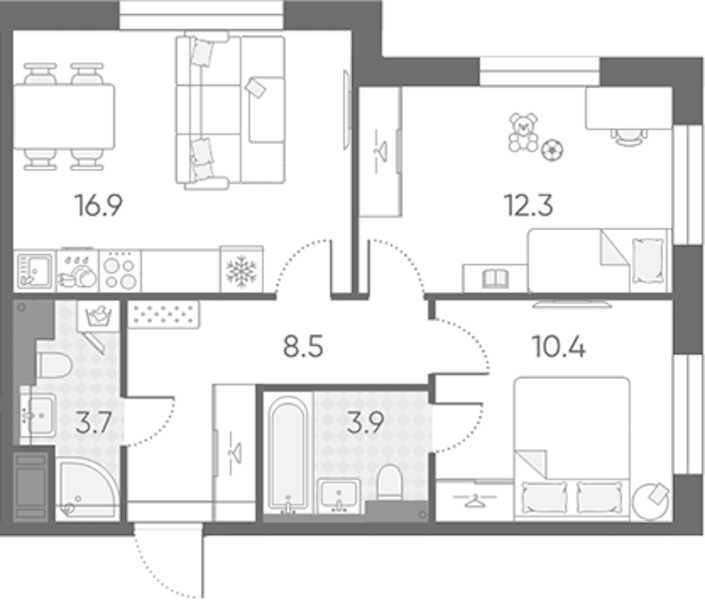 - Площадь кухни16,9 м2