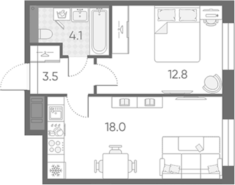 - Площадь38,4 м2
